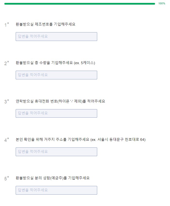 기존 갈변으로 인한 변색에 따른 1차 온라인 접수받은 택배주소와 상이하오니 꼭 확인하시고 보내시기 바랍니다.